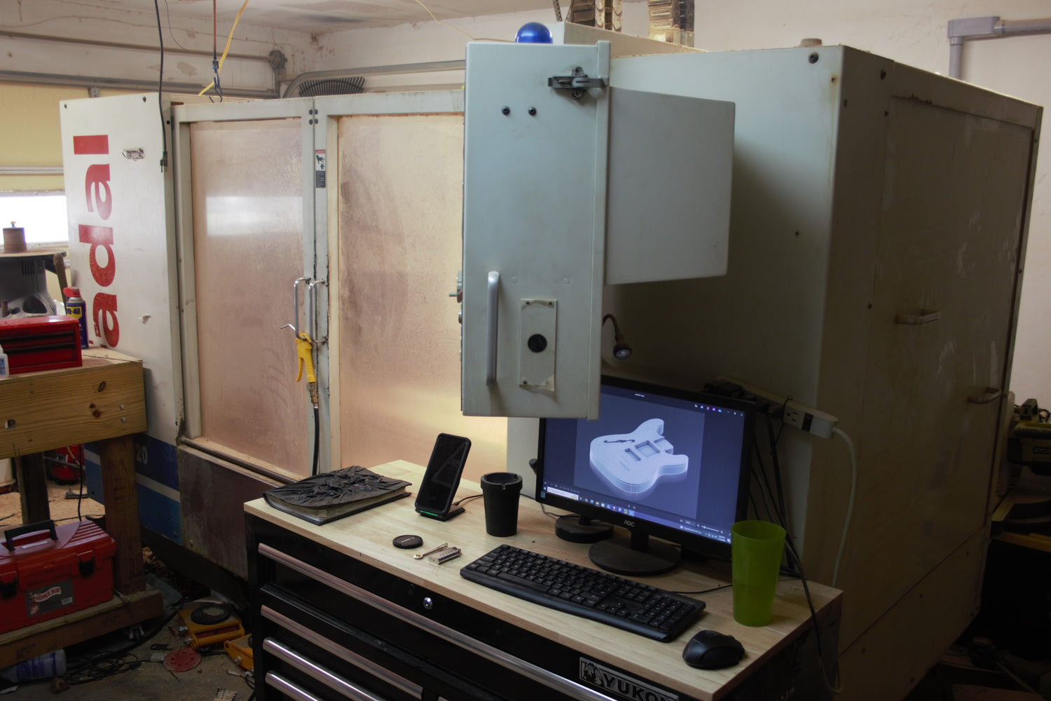 The center of Ultratouch guitars is a 2001 Fadal 4020 vertical machining center. Just like the machines used by the biggest manufacturers, it enables precision guitar making that is infinitely repeatable.