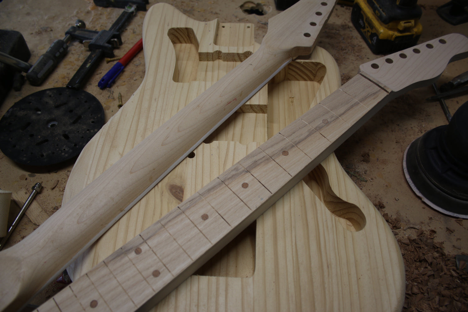Custom and standard necks are available unfinished, with frets installed leveled and dressed.